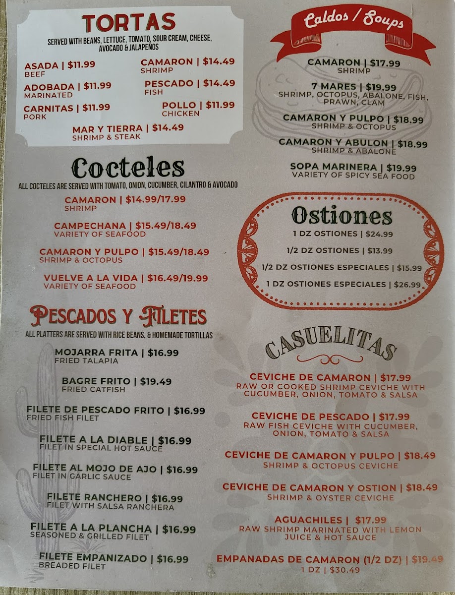 Mariscos El Palmar Menu